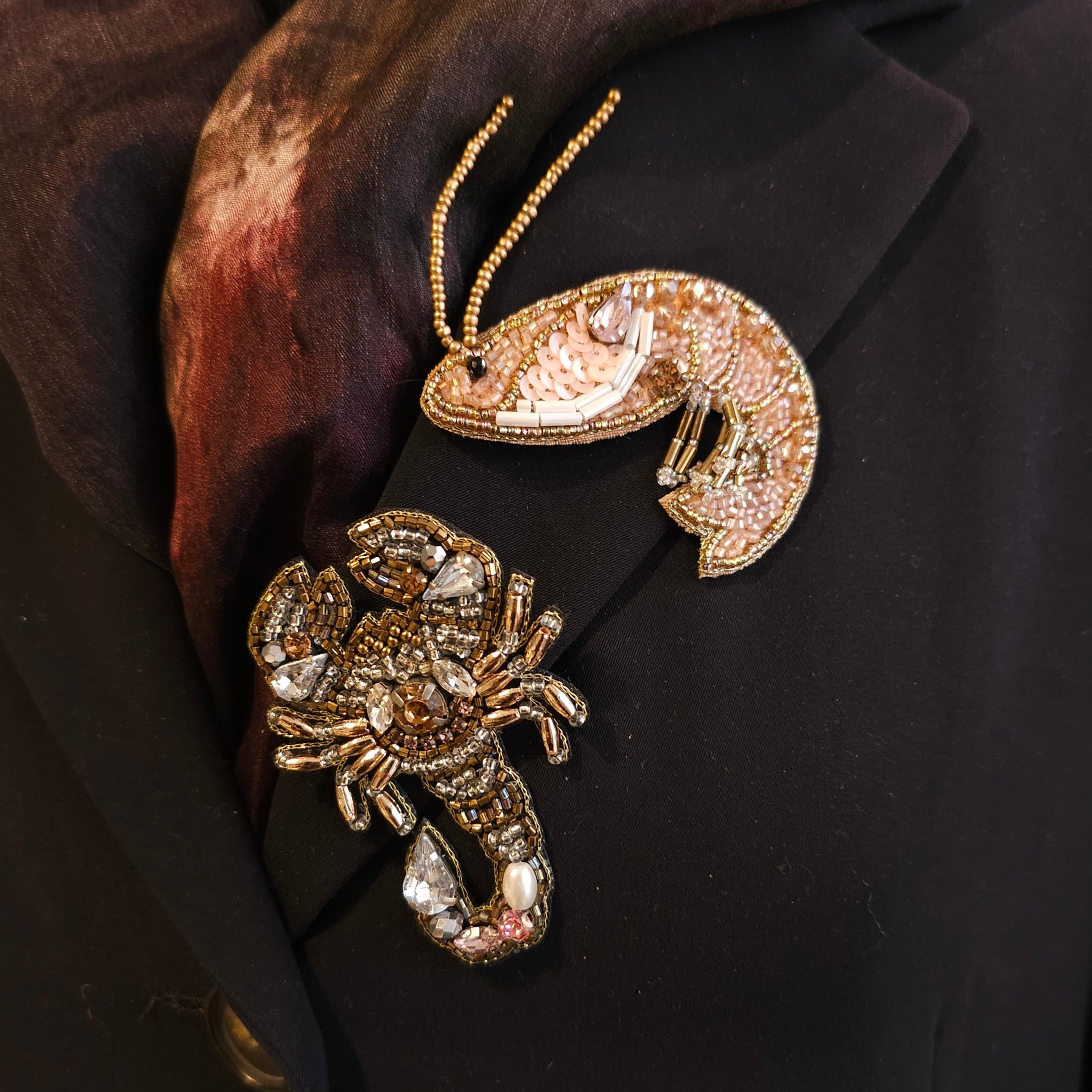 Scampi Brooch turns the shrimp into a piece of wearable art. Handwoven with meticulous bead embroidery, the 6 × 6 cm design captures the playful curve and texture of the sea creature. Light at just 6.2 g, it’s easy to wear while adding a touch of ocean-inspired charm. A brooch that brings both whimsy and elegance, crafted in the unique spirit of the LONA LOOM collection.
