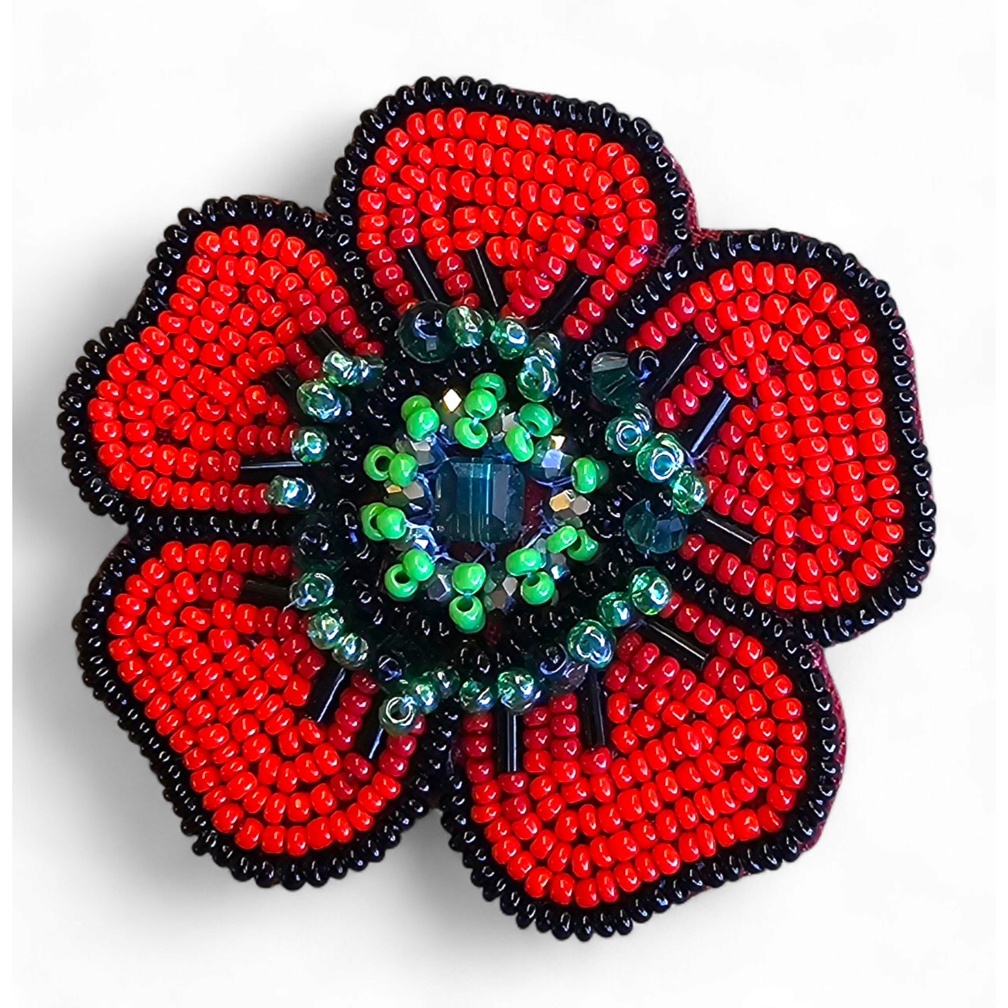 Handcrafted from felt, glimmering sequins, glass beads, and embroidery thread, it’s a piece that evokes both wild meadows and quiet strength. No two are exactly alike, just like the moments they commemorate.