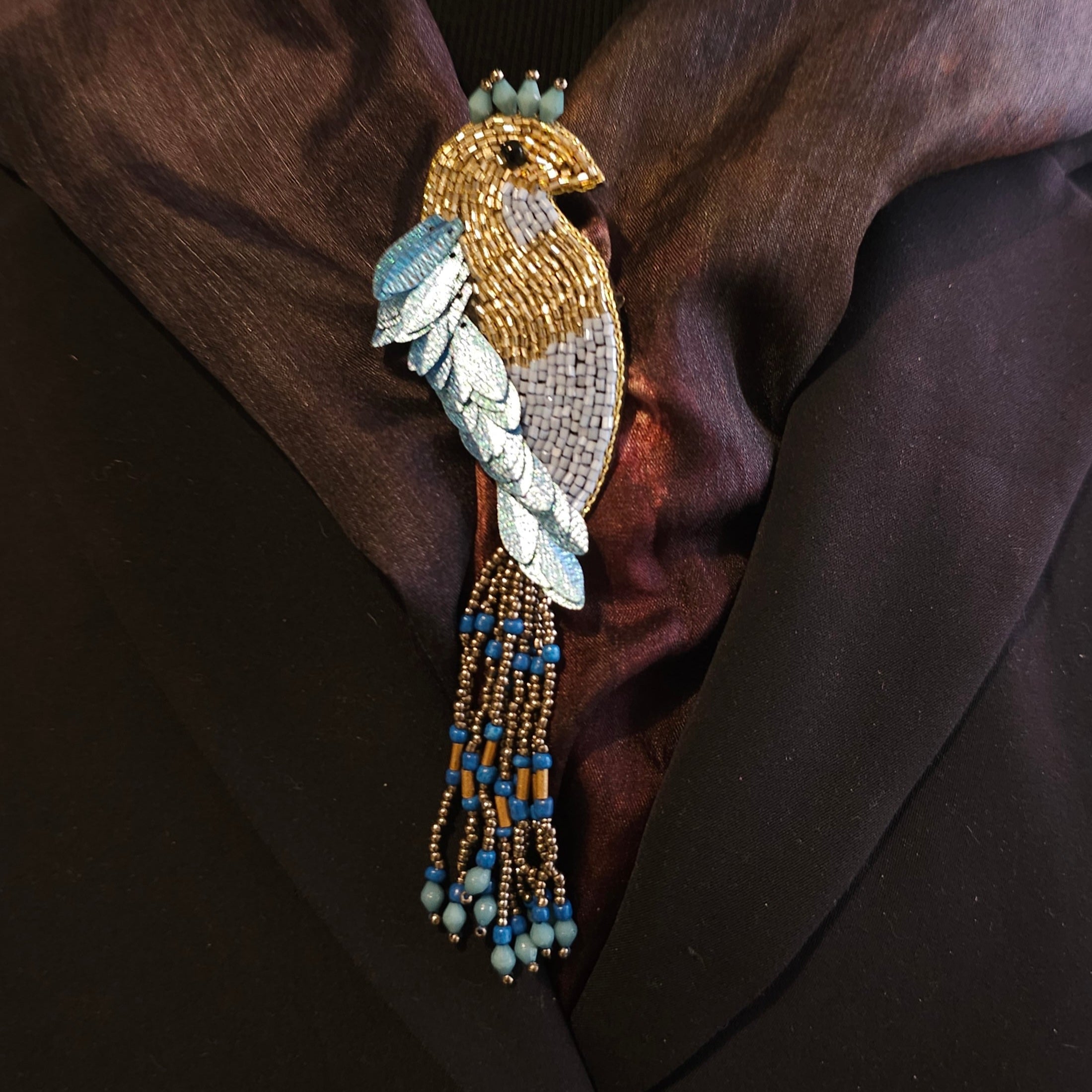 Skywhim is a pause between moments a soft blue parkiet, perched and present. With her feathers caught in pale blues and cloud-whites, she rests lightly, observing the world with bright curiosity. This brooch captures the stillness before movement, the joy of simply being where you are.