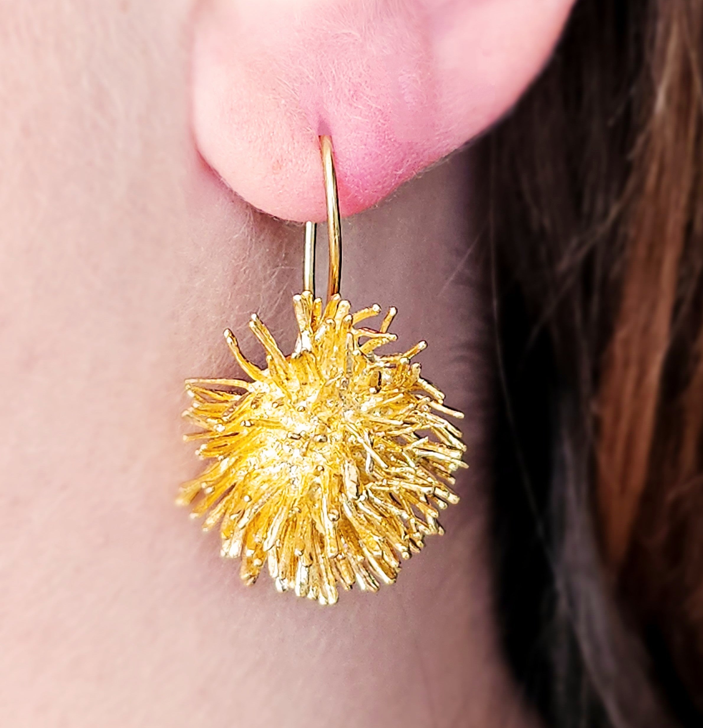 The Thornback earring from the LONA EDEN collection is a fierce little tribute to nature’s quiet warriors. Inspired by the spiked back of a hedgehog, this bold golden form is cast in 24k gold-plated brass with sharp, sculptural detail. Both wild and protective, it honours the beauty of boundaries and the strength in choosing when to open or retreat. Not just cute. Powerful.