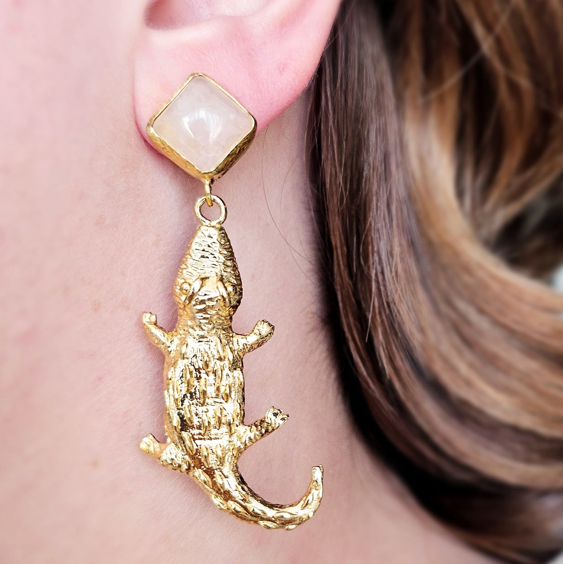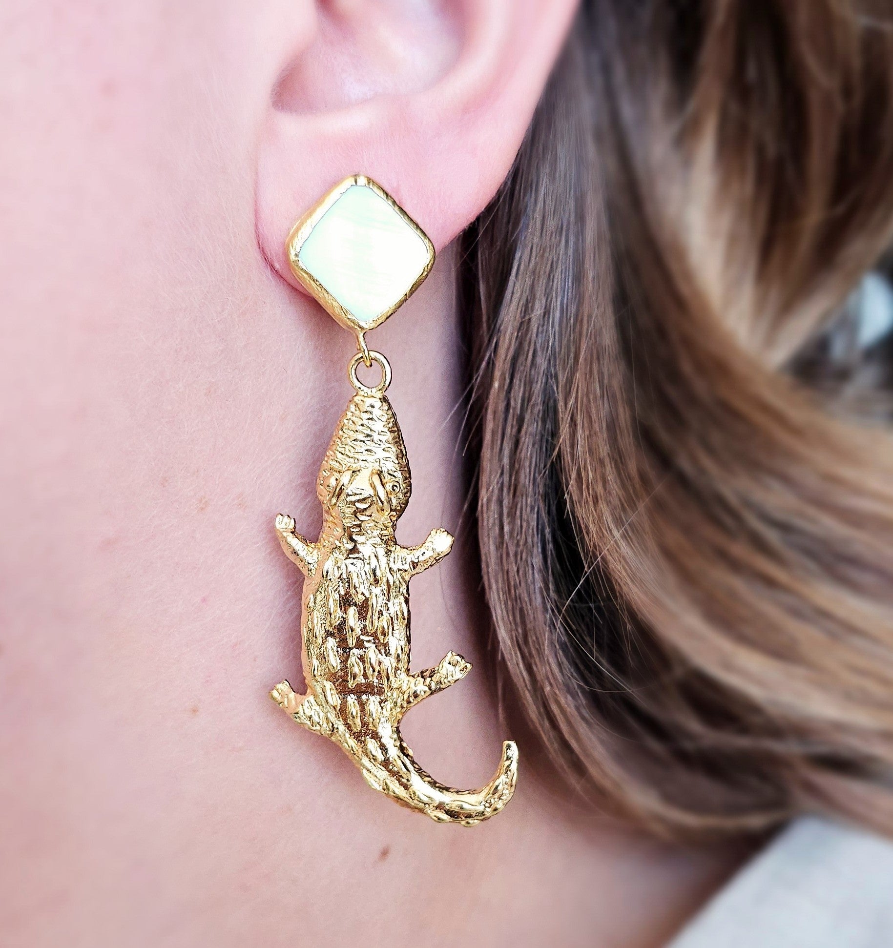 Sleek, wild, and a little dangerous — Gator Glint features a sculptural crocodile form paired with a sparkling stone. A fearless fusion of nature and glam, made to snap attention wherever you go.