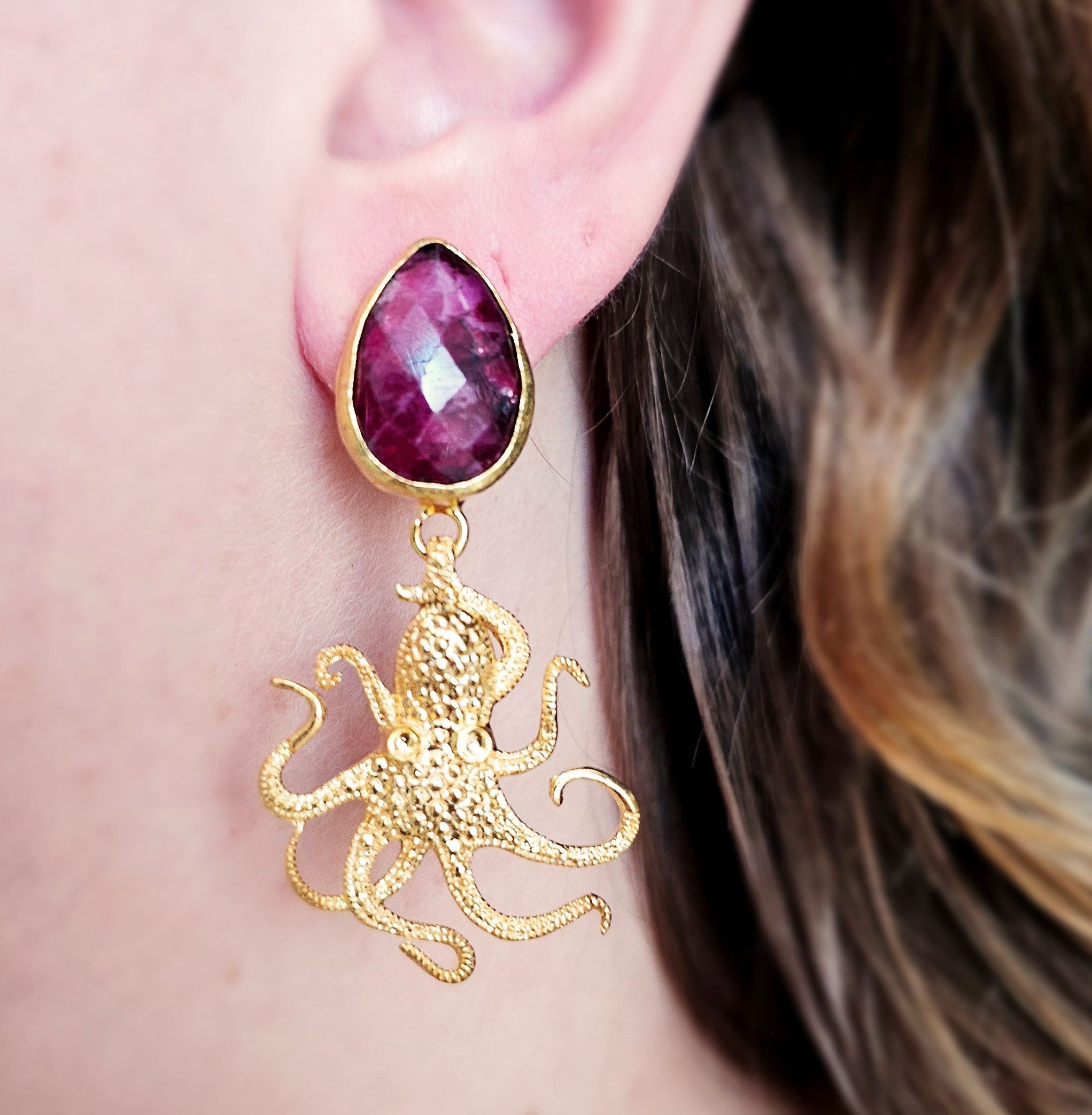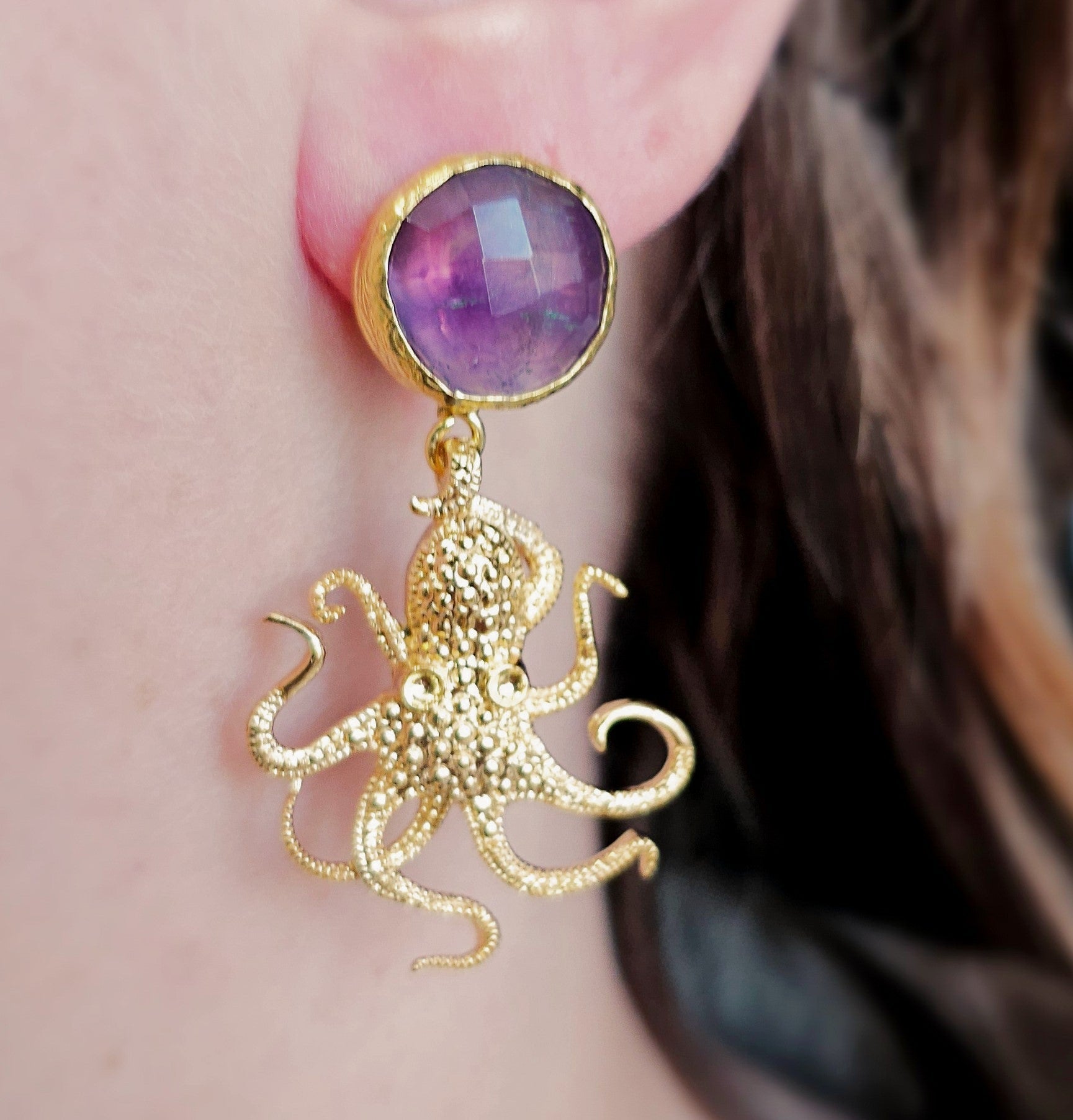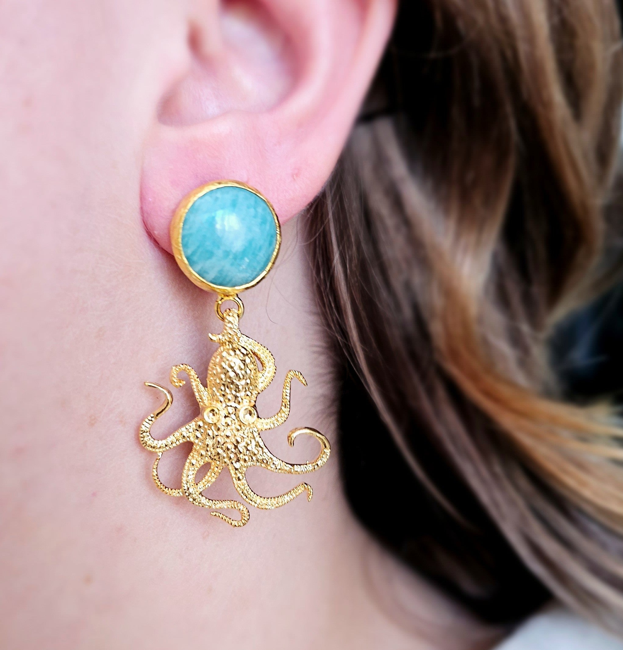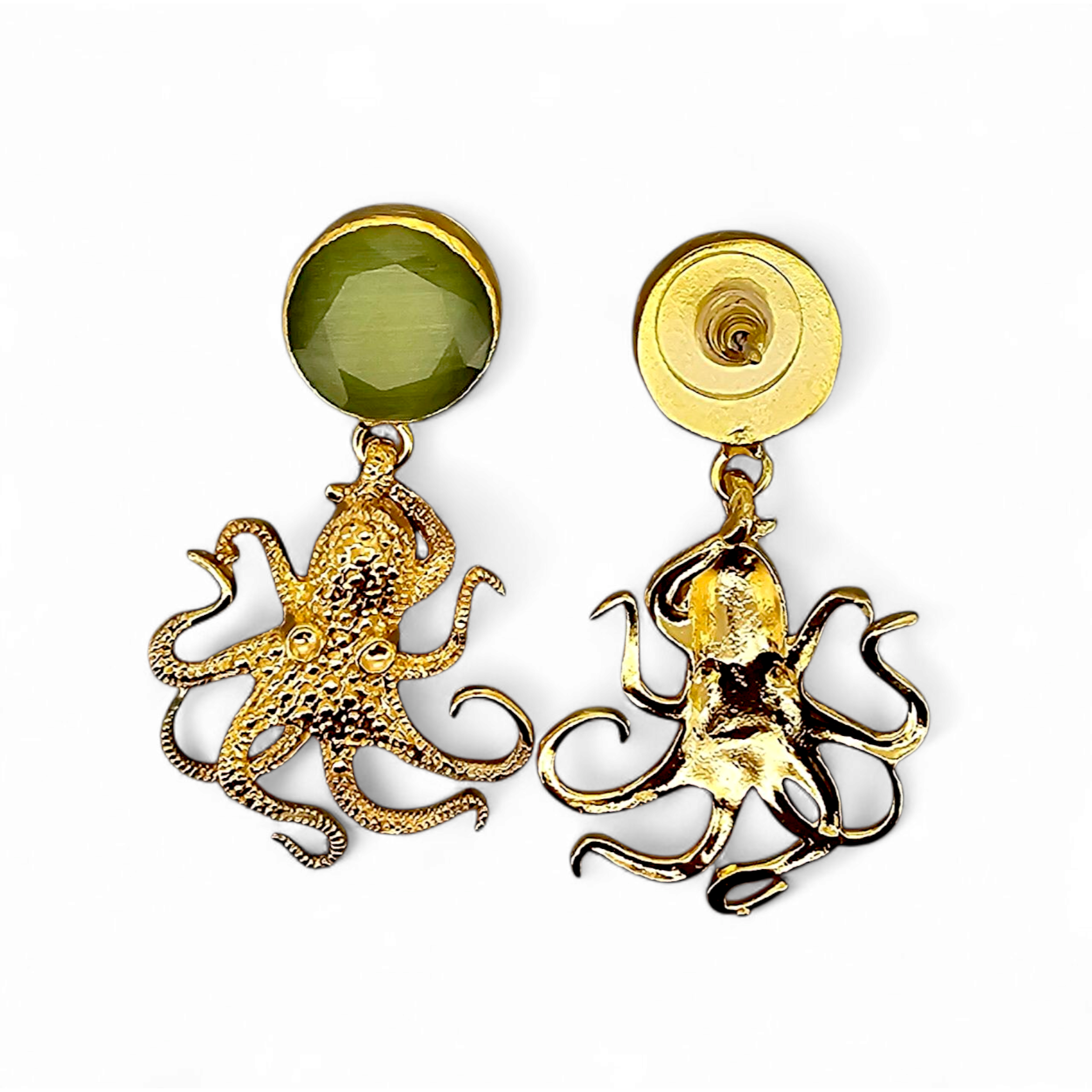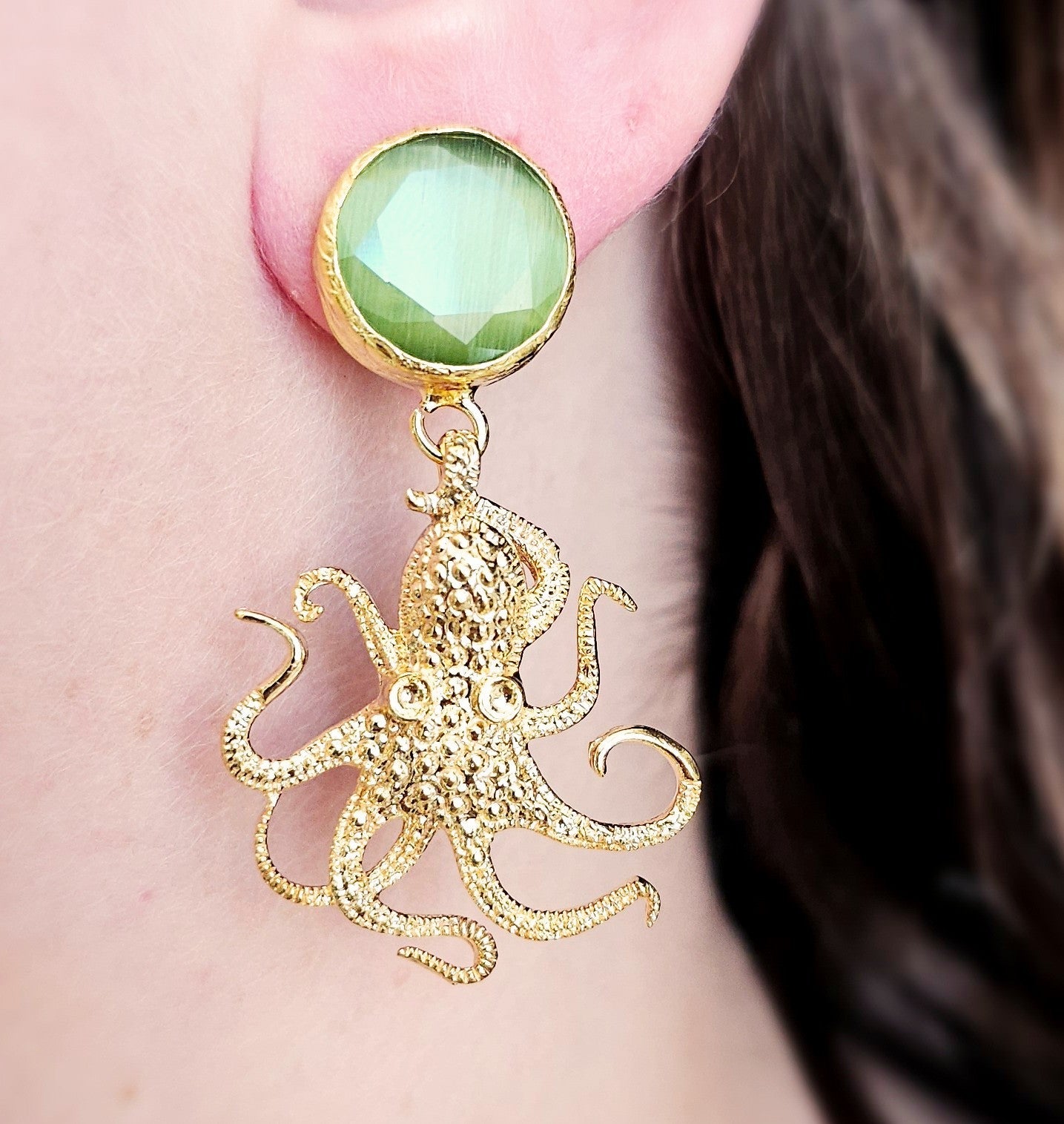 Styling Tip: "Let the earring shine by styling it with neutral tones sand, seafoam, or ivory. A slick bun or low ponytail helps the octopus stand out. Pair with a linen shirt or silky halter top, and add a hint of green shimmer on your eyelids for a subtle ocean echo. Let your look flow like a current, not a costume.."