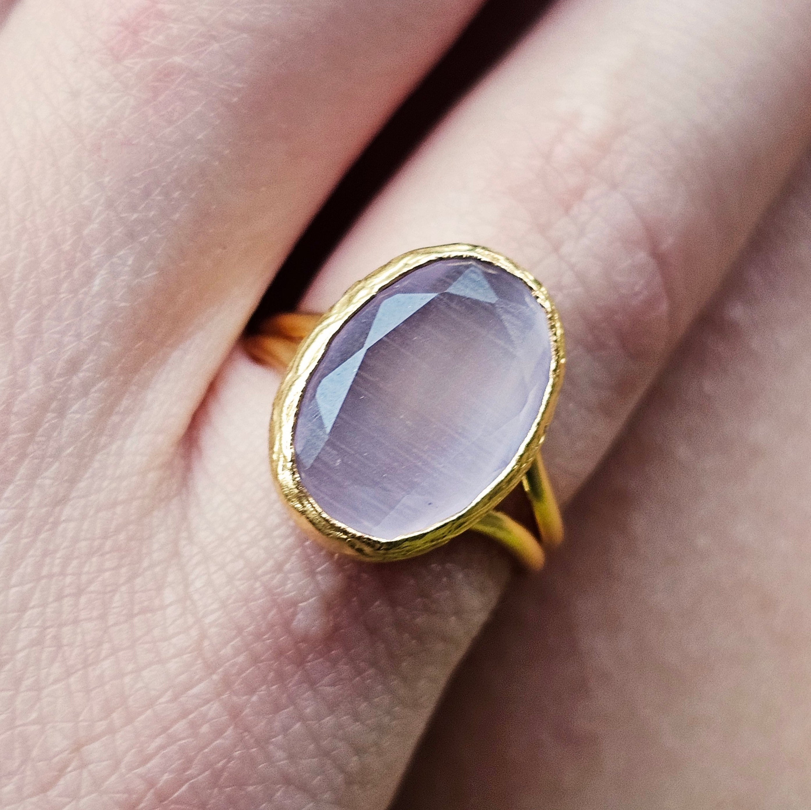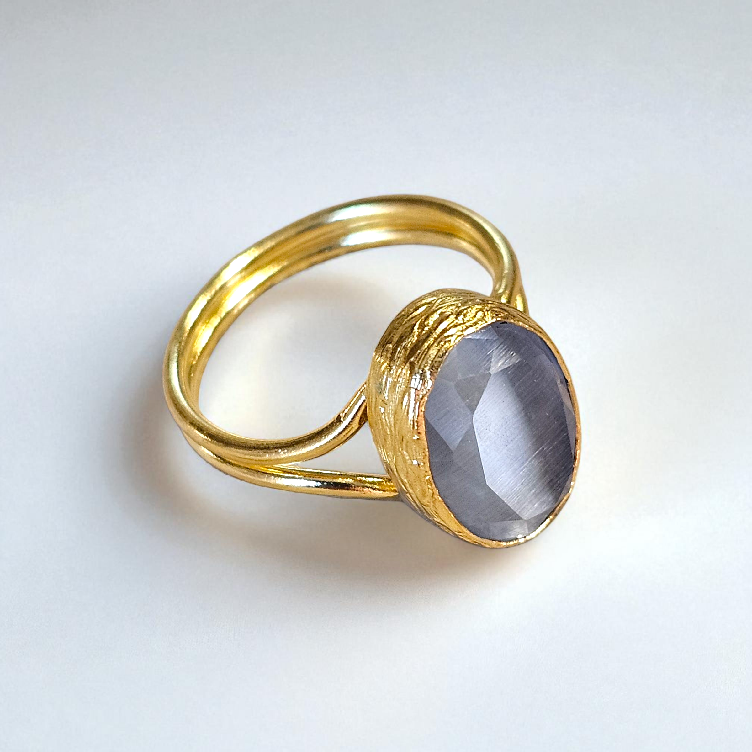 Glow Ring Grey is set with a smooth oval cateye stone (10 × 14 mm) that reflects the light with its signature shifting stripe. The cool grey tone adds a subtle, modern accent that pairs effortlessly with any look. With an adjustable band (size 16–18) and a lightweight 3 g design, it’s both refined and comfortable to wear every day.