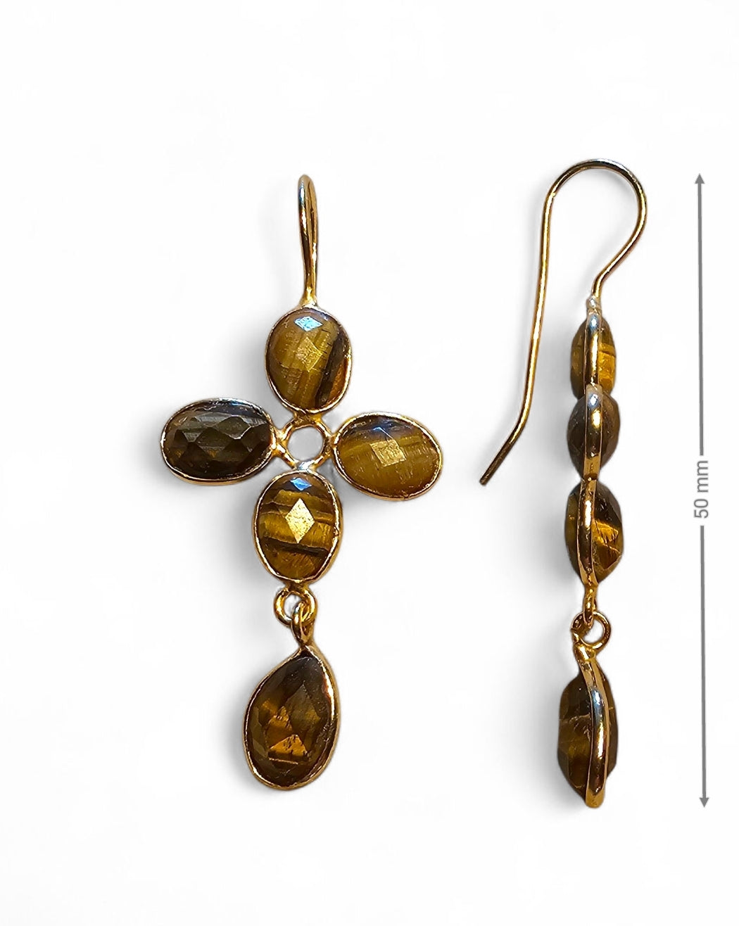 Mirelle embodies the luminous beauty of the LONA DELICA collection. Five natural moonstones are linked in a fine vertical composition, creating gentle movement and a soft play of light. Each stone reflects subtle shades of iridescence, making every pair unique. Handcrafted from gold-plated brass, these earrings balance delicate design with natural radiance. At just 2.4 grams, Mirelle feels almost weightless pure light in motion.