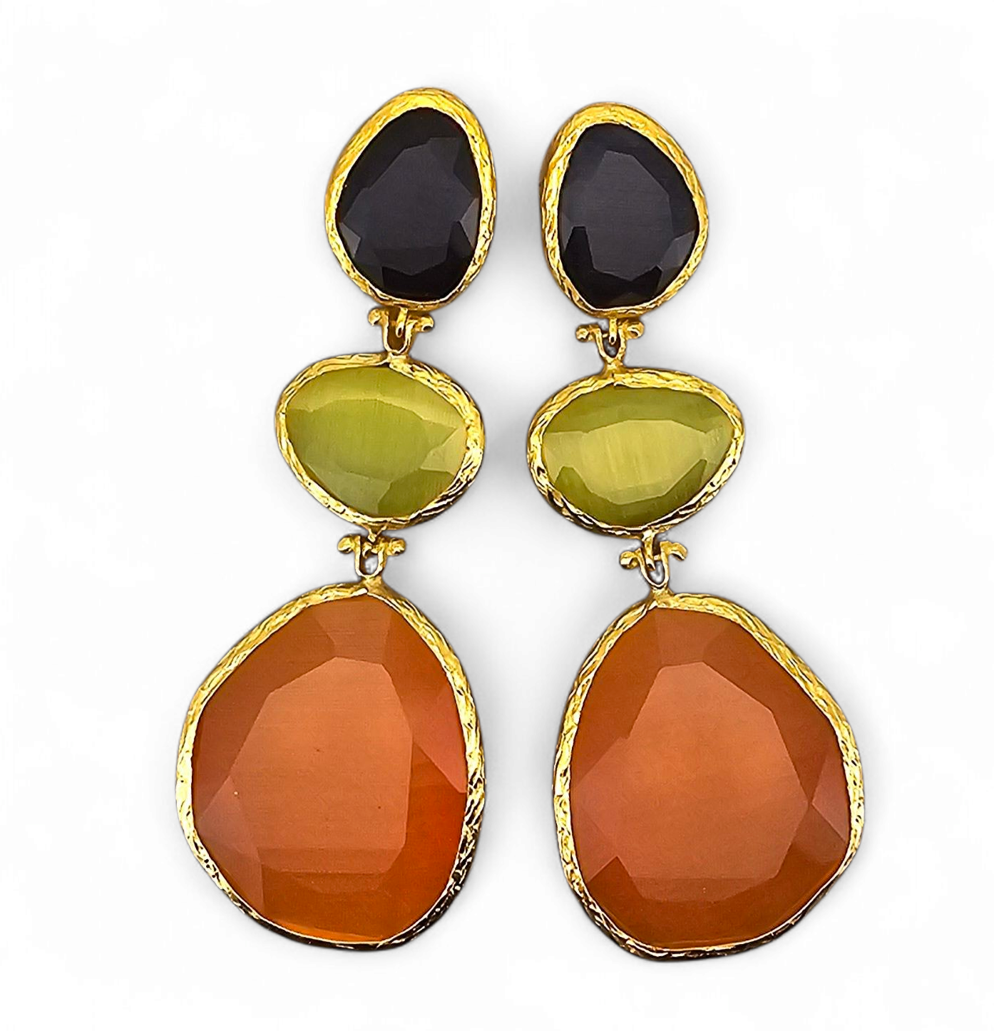 Each earring is cast in brass, plated with 24k gold, and hand-finished to bring out the glow in each color. Designed to move with you playful, radiant, and unmistakably alive.