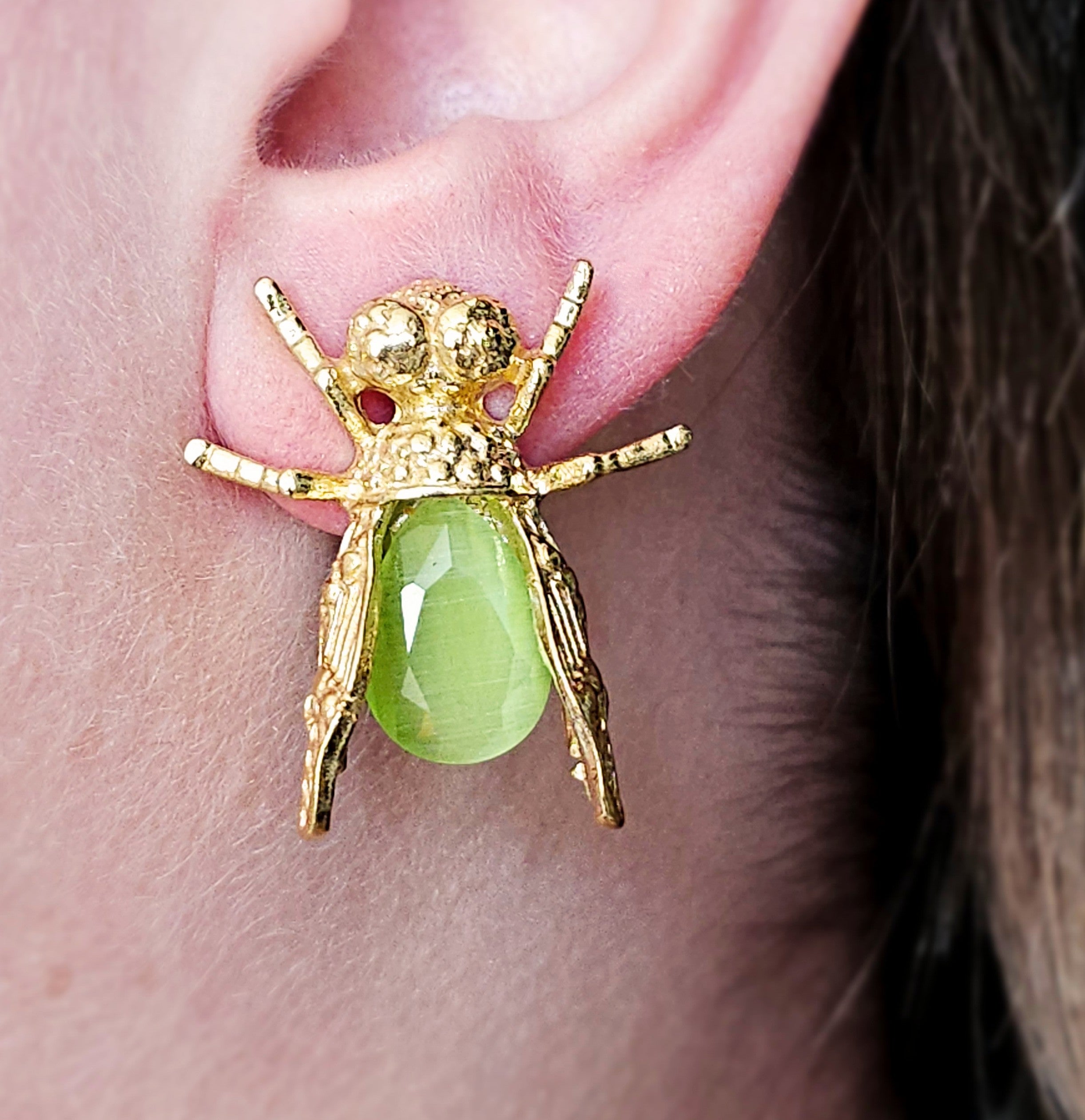 A tiny winged rebel cast in detail, paired with vibrant cateye stones in mixed hues this earring merges nature’s raw elegance with playful expression. Unexpected, spirited, and full of symbolic flight, it’s a celebration of the unnoticed, the untamed, and the beautifully bizarre.