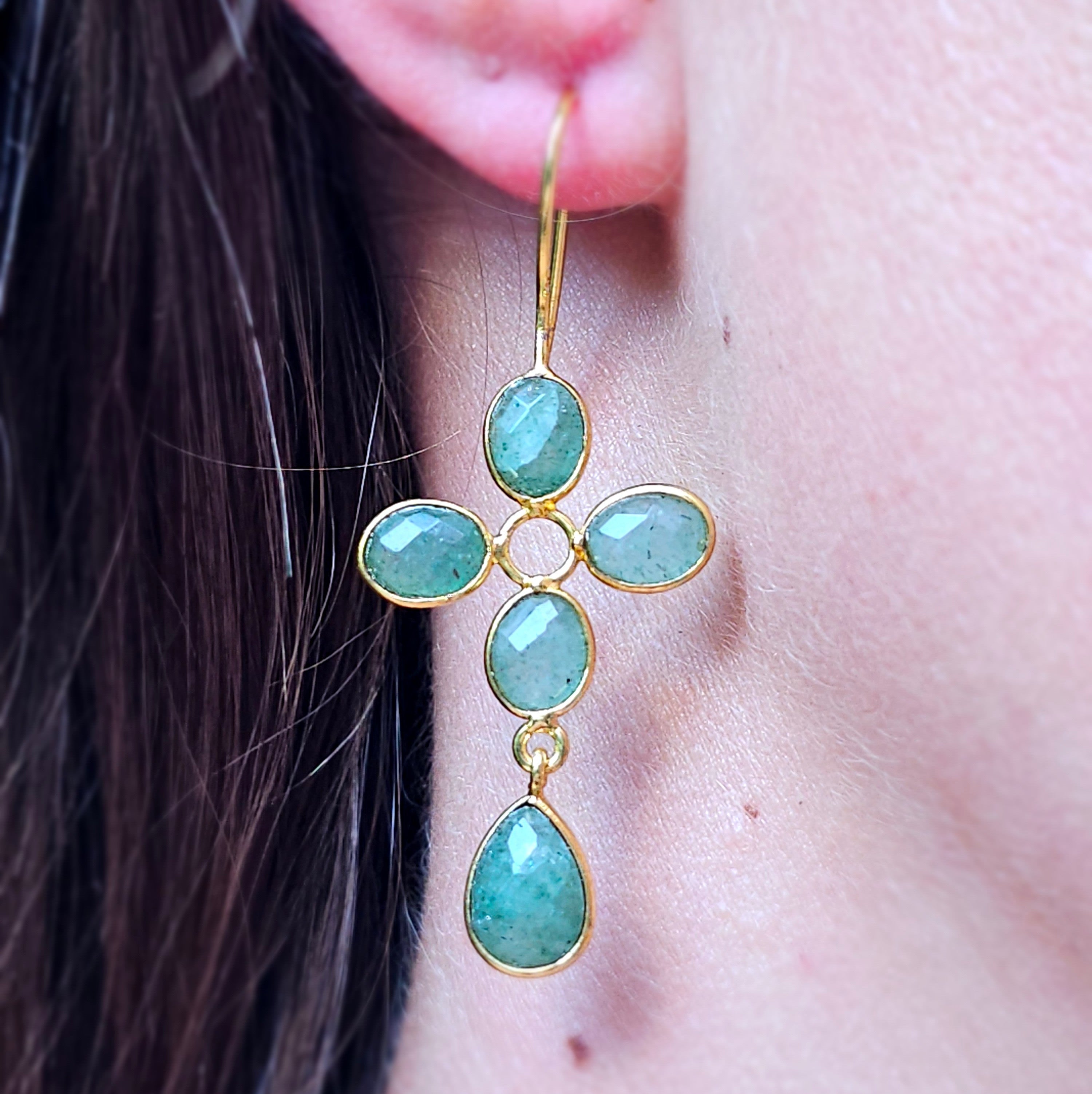 Material: "22k gold-plated brass, synthetic blue chalcedony."