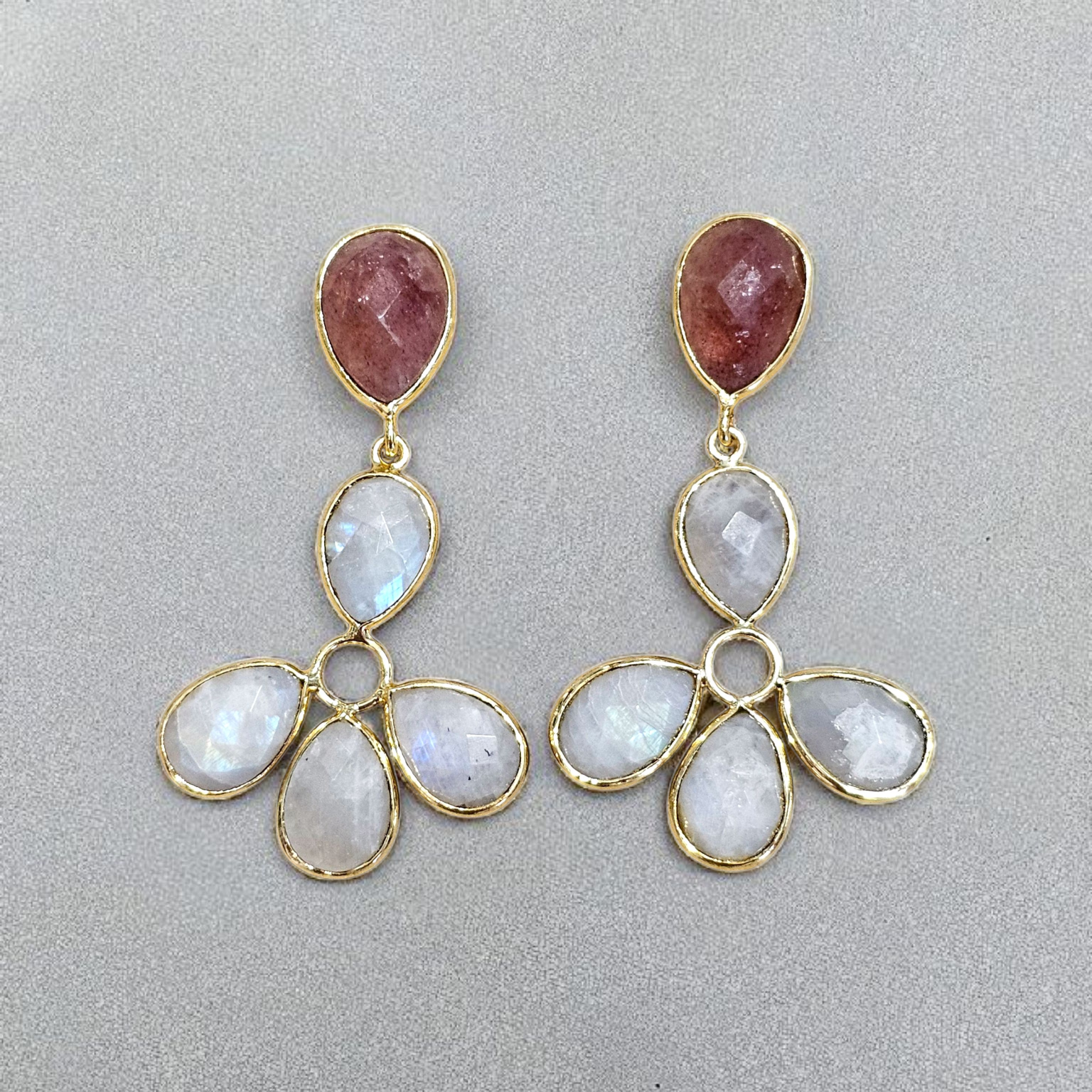 Material: Gold-plated brass with moonstone and strawberry quartz