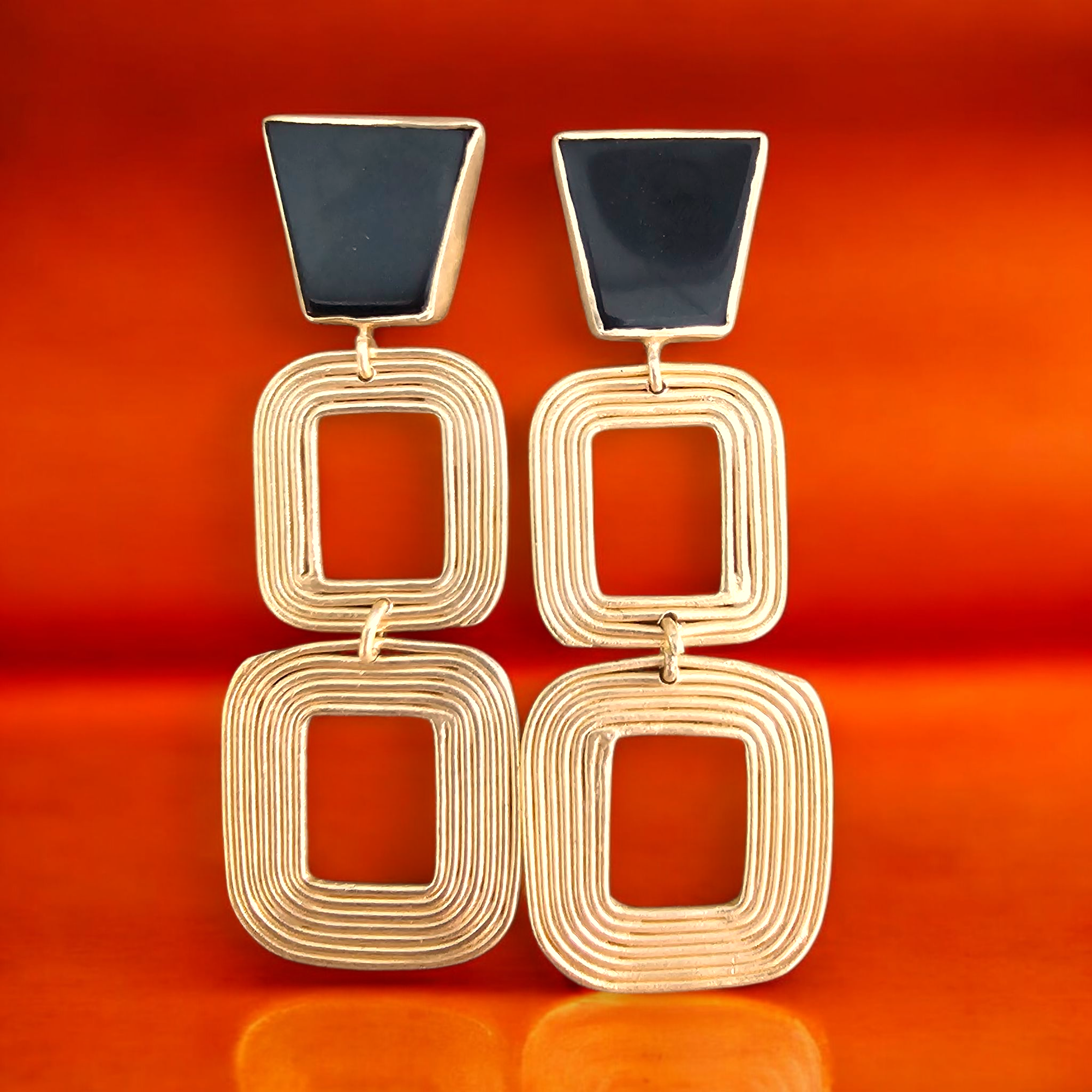 Styling Tip: "Wear with sharp tailoring or clean, minimal silhouettes to echo the geometric forms. A slick low ponytail or deep side part enhances the architectural energy. Add one bold stone ring to mirror the earring’s core no need for more. Spiral Core speaks volumes on its own.."