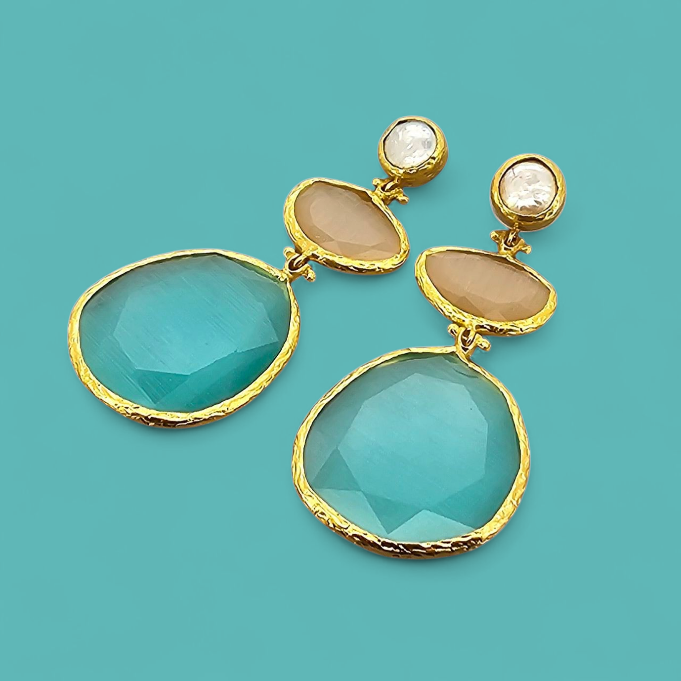 Each earring is cast in brass, plated with 24k gold, and hand-finished to bring out the subtle shift between tones. A piece that soothes, reflects, and moves with grace.