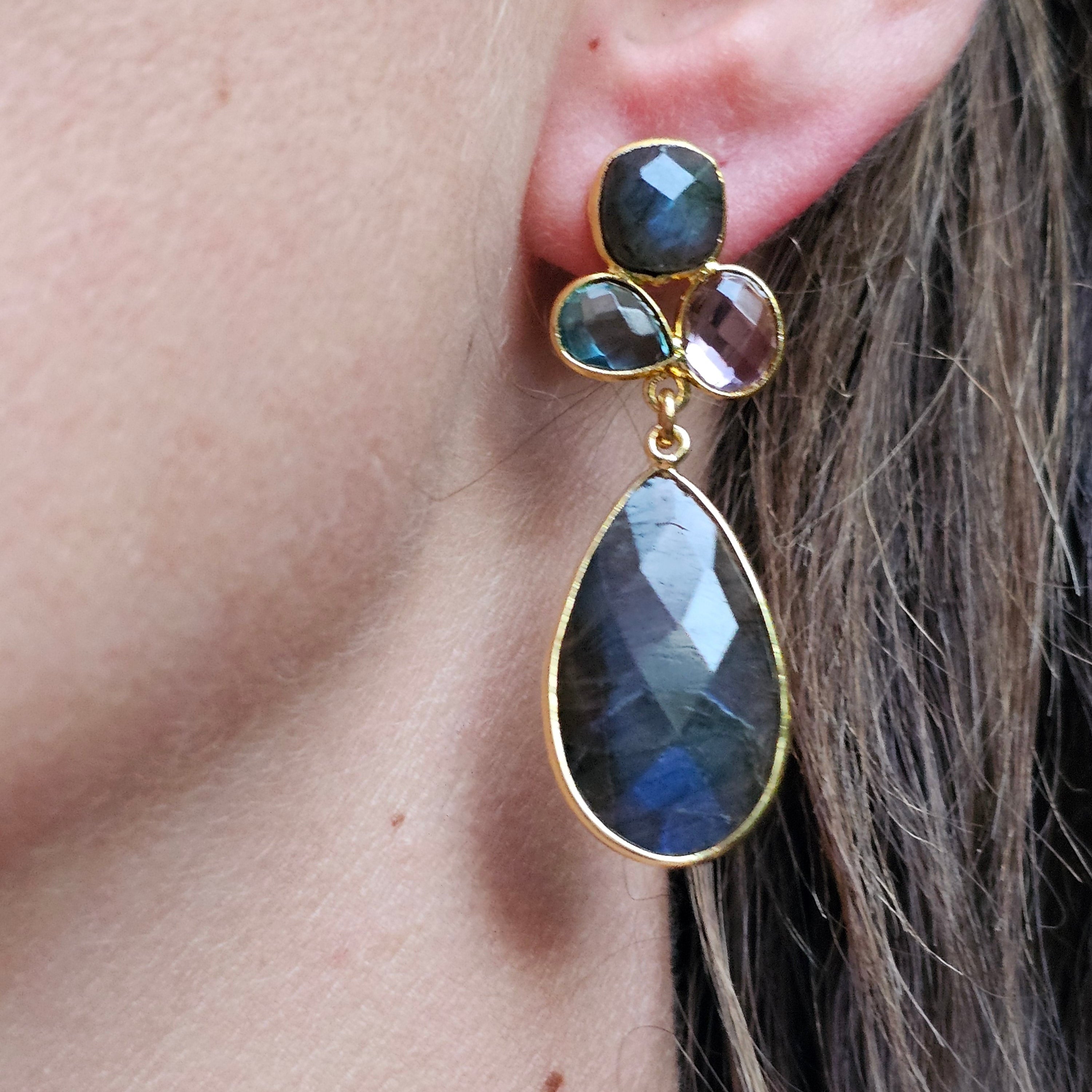 Material: "22k gold-plated brass, labradorite, hydro quartz."