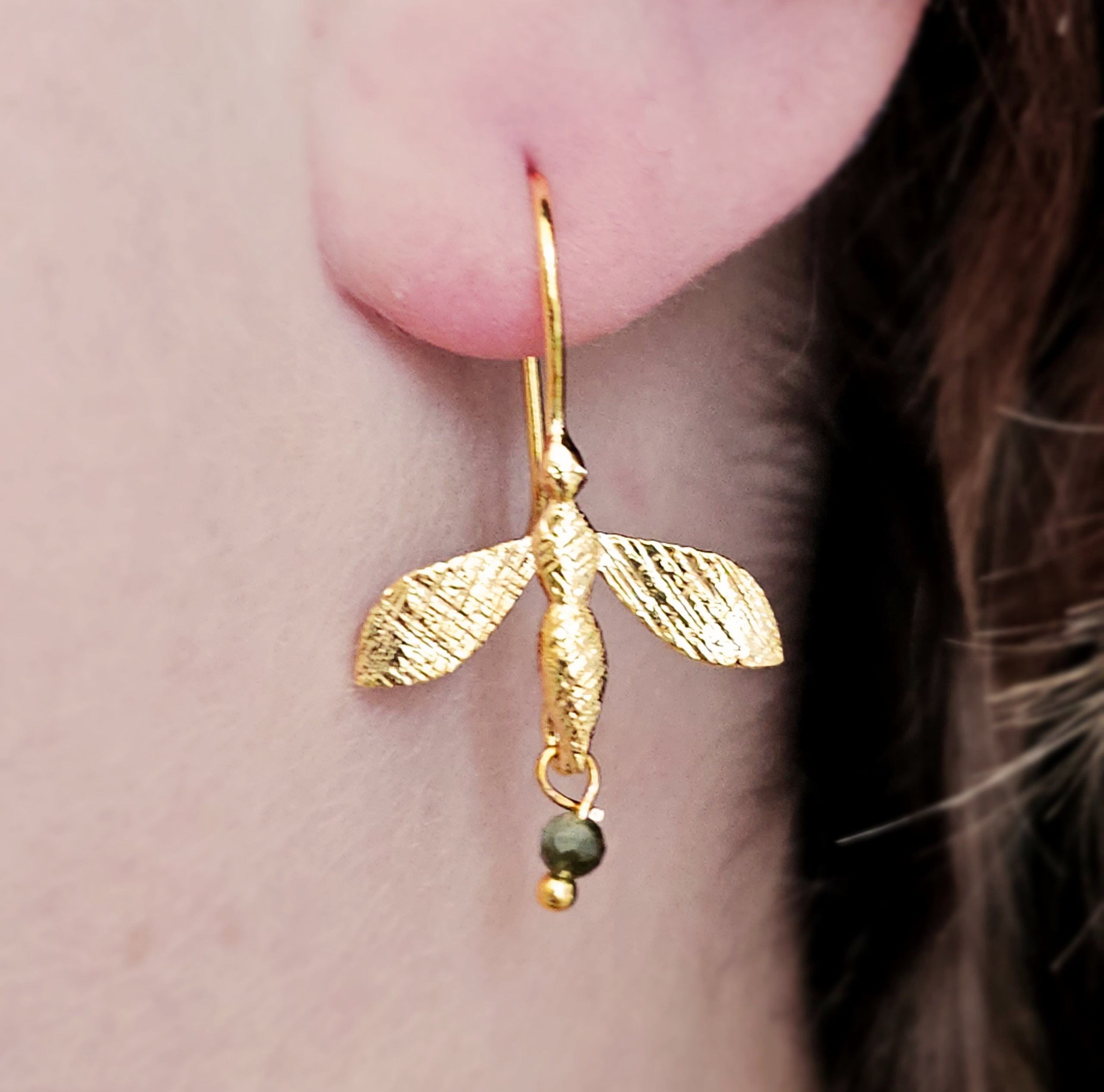 Styling Tip: "Let the Honeykin Bee shine on its own, or wear it mismatched with another LONA EDEN piece for a playful, natural asymmetry. Pairs beautifully with windswept hair, bare shoulders, and earth-toned linen"
