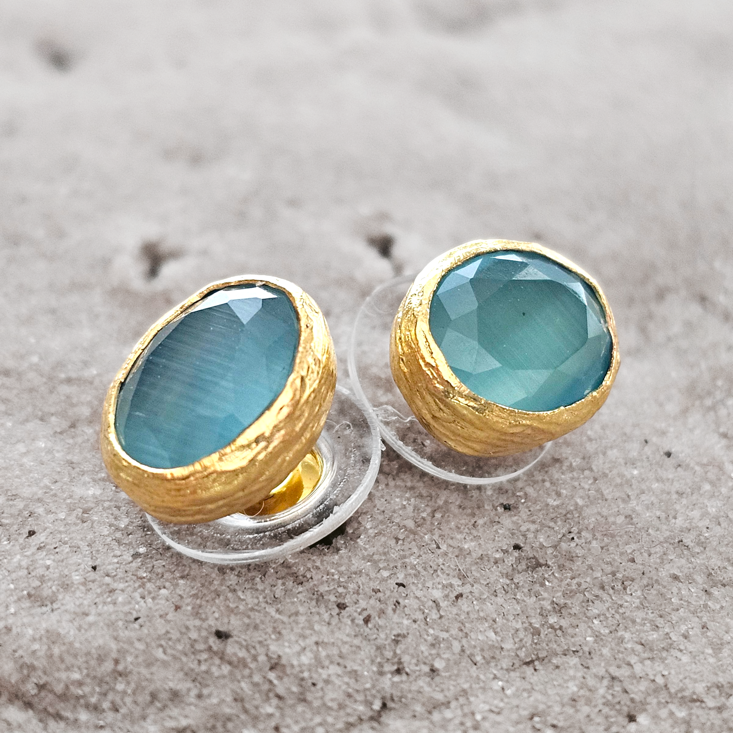 Material: 22k gold-plated brass with light turquoise cateye stone