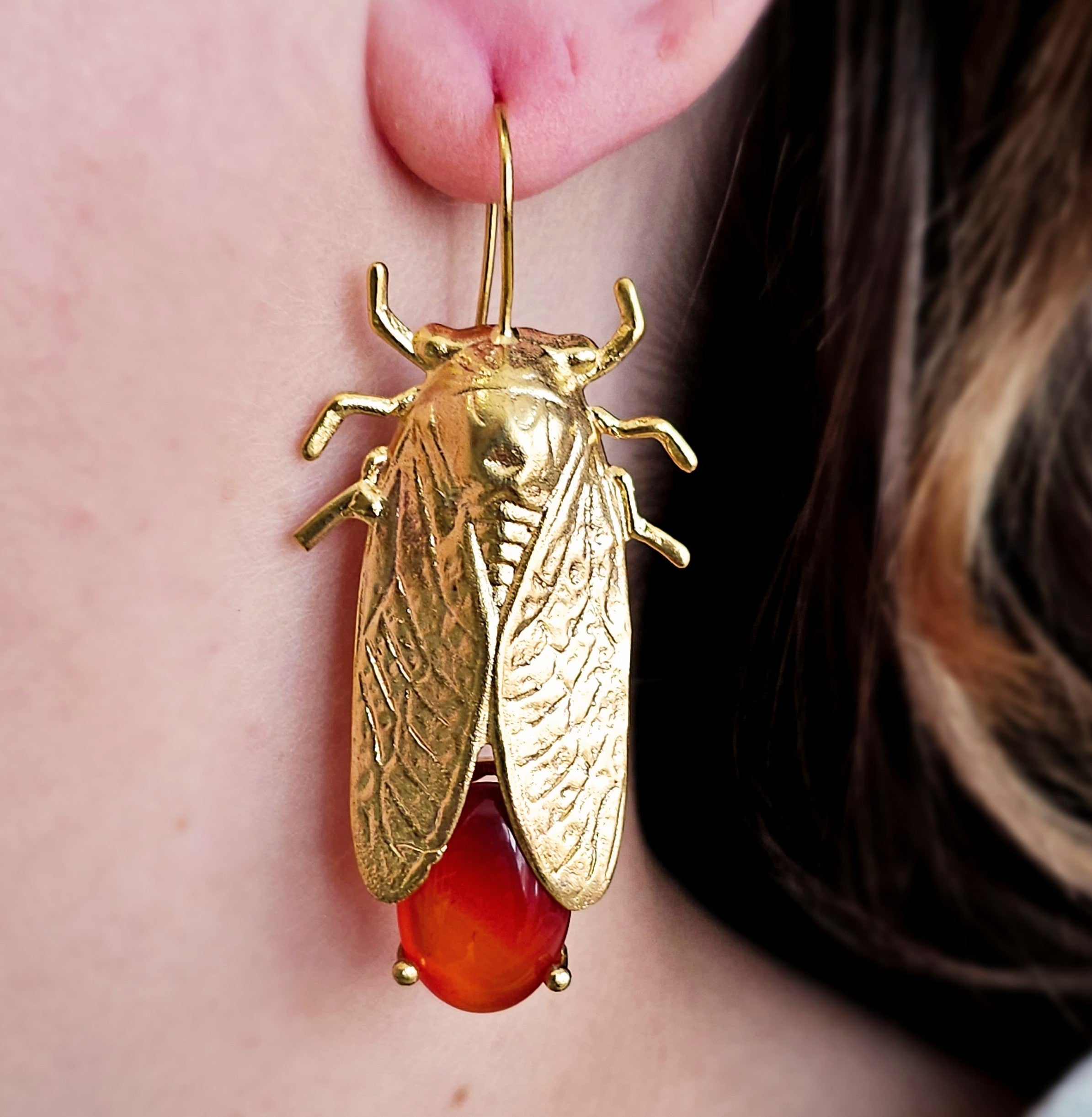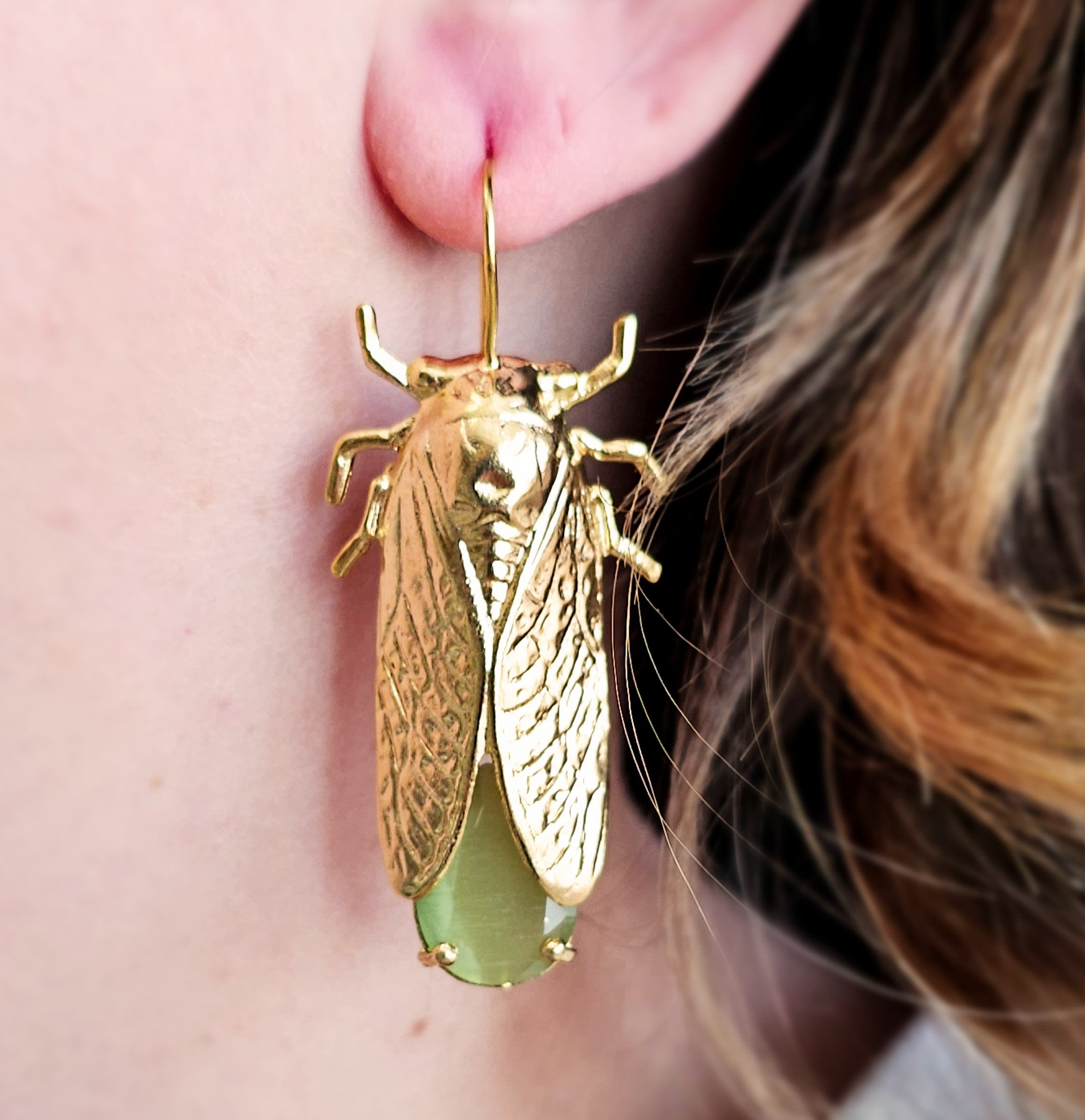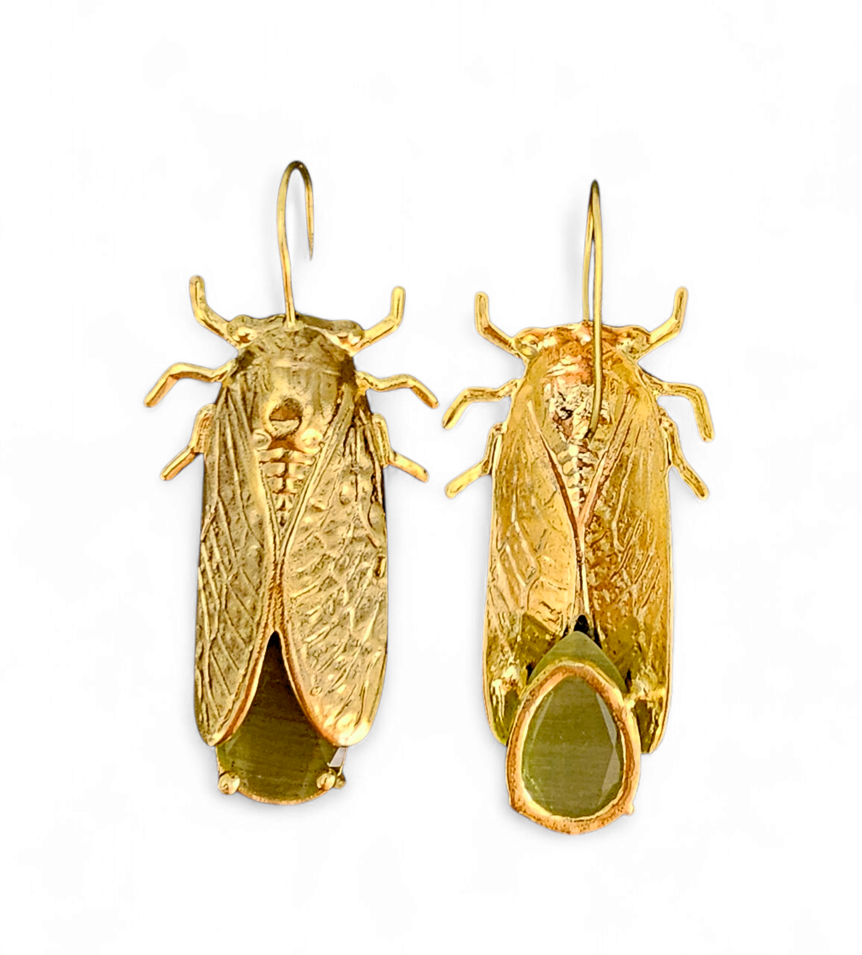 Monumental and magnetic, Regal Chirp is the crown jewel of our insect-inspired designs. This oversized statement earring features a finely sculpted cricket cast in 24k gold-plated brass, its elongated body stretched with surreal precision. Larger than life, it embodies nature’s strangeness transformed into regality.